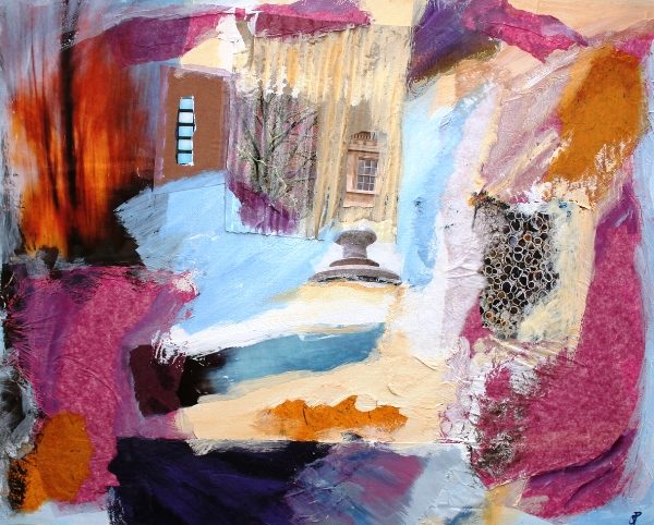 Acrylics and mixed media on canvas board, framed in white wood £195